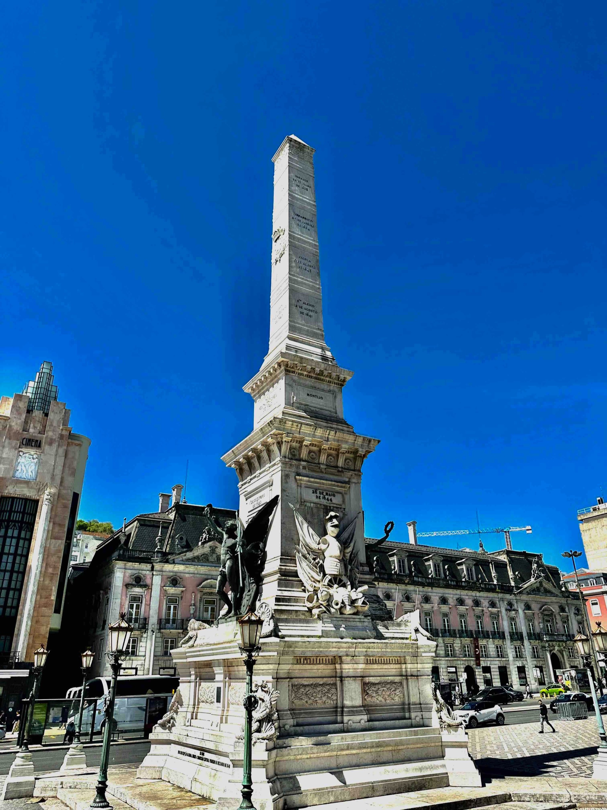 Monumento dos Restauradores - an obelisk at the center of Praça dos Restauradores with Palácio Foz in the background