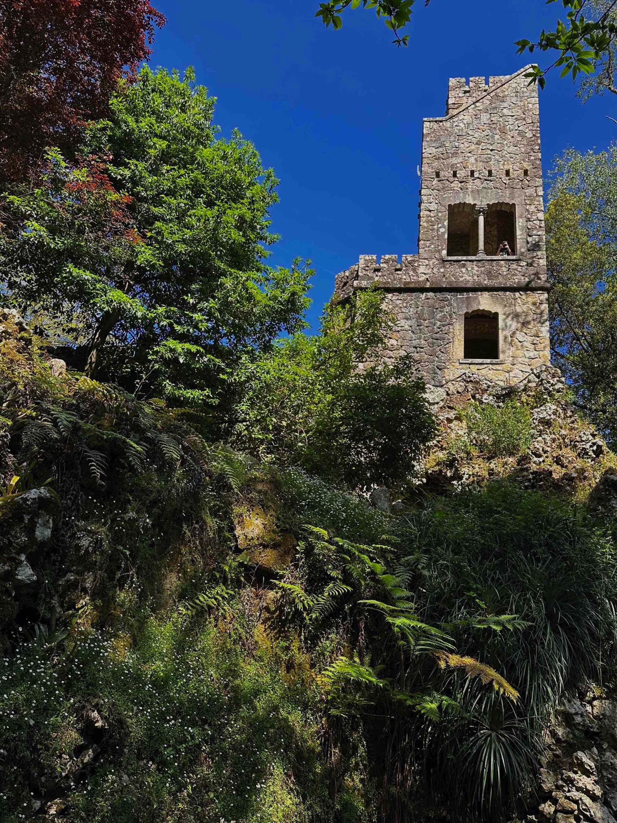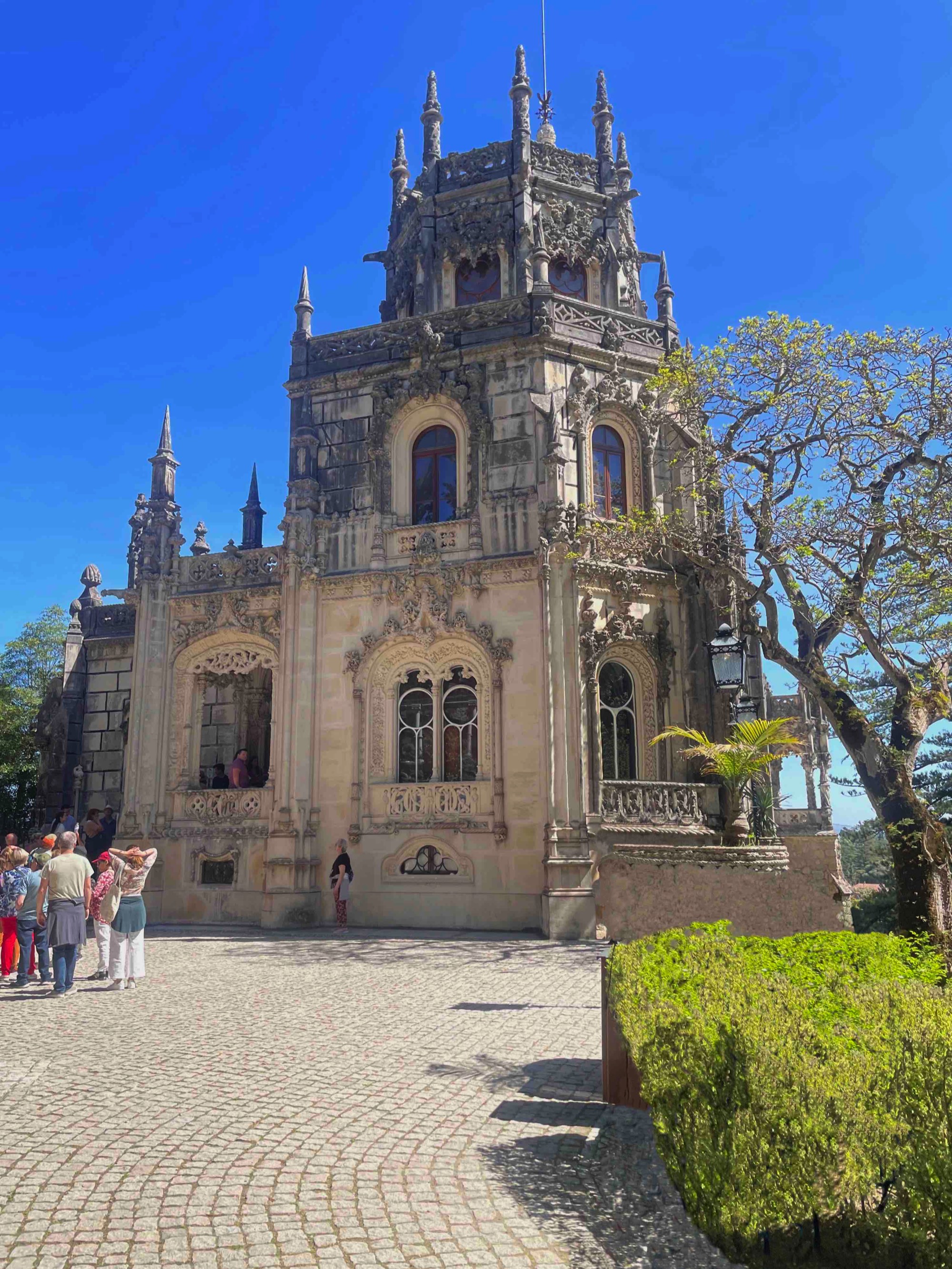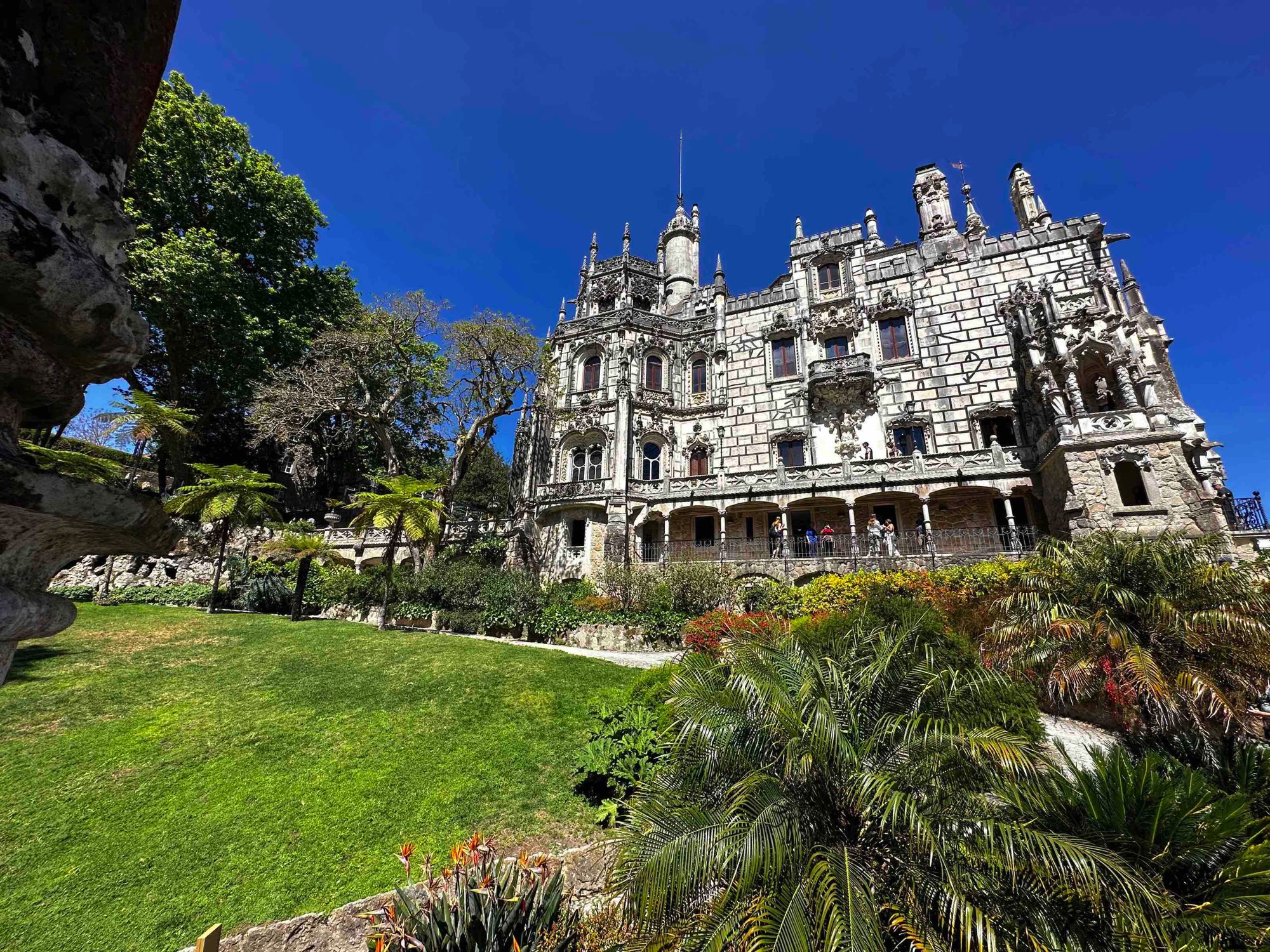 Palacio de Regaleira (R) and the Chapel (L) as seen from the palace grounds