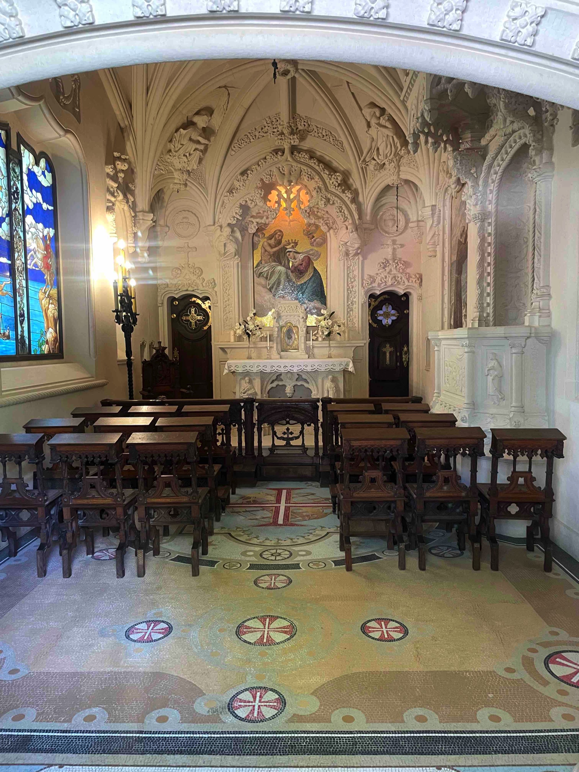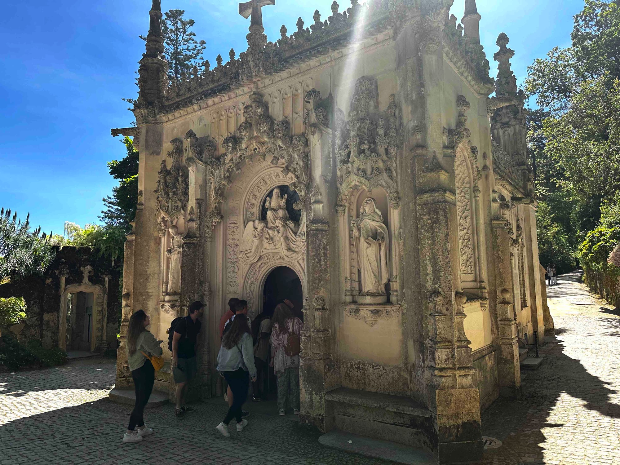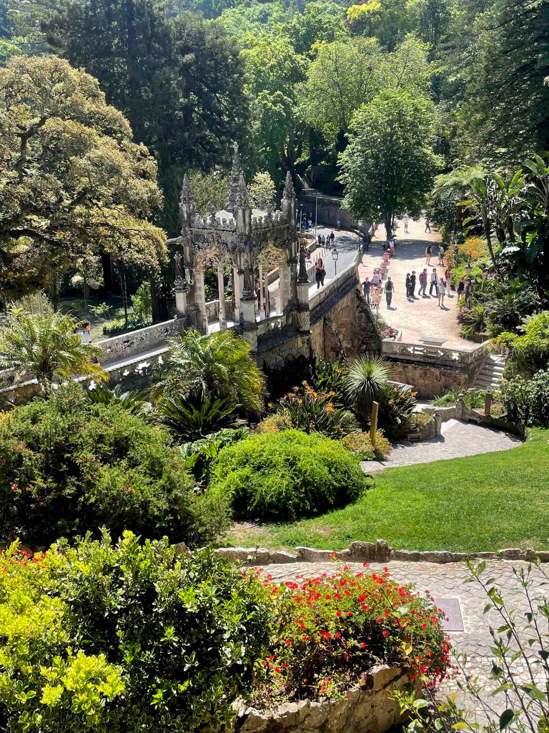 Palacio de Regaleira (R) and the Chapel (L) as seen from the palace grounds