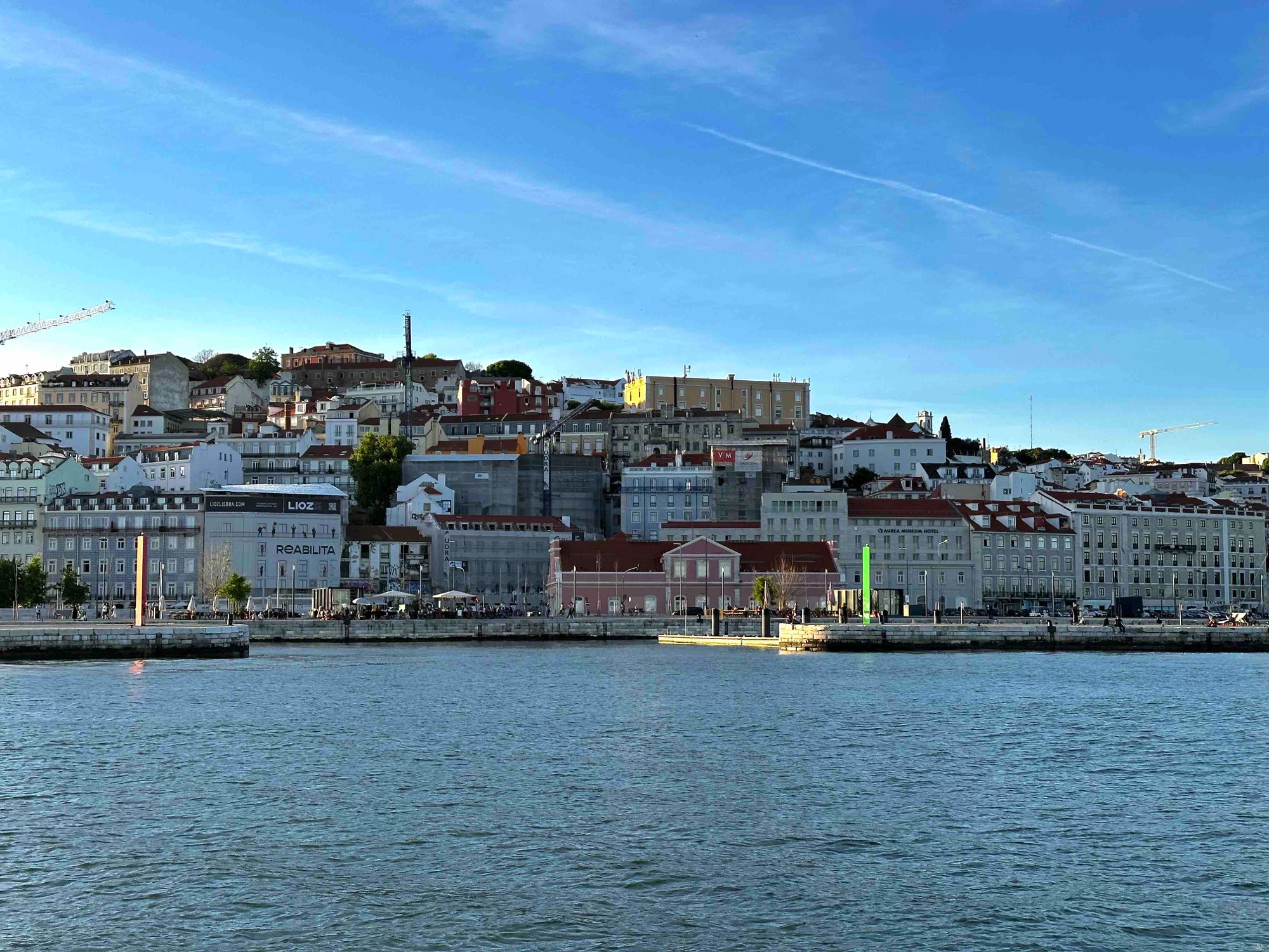 View of Lisbon's buildings along the Tagus from the sailboat