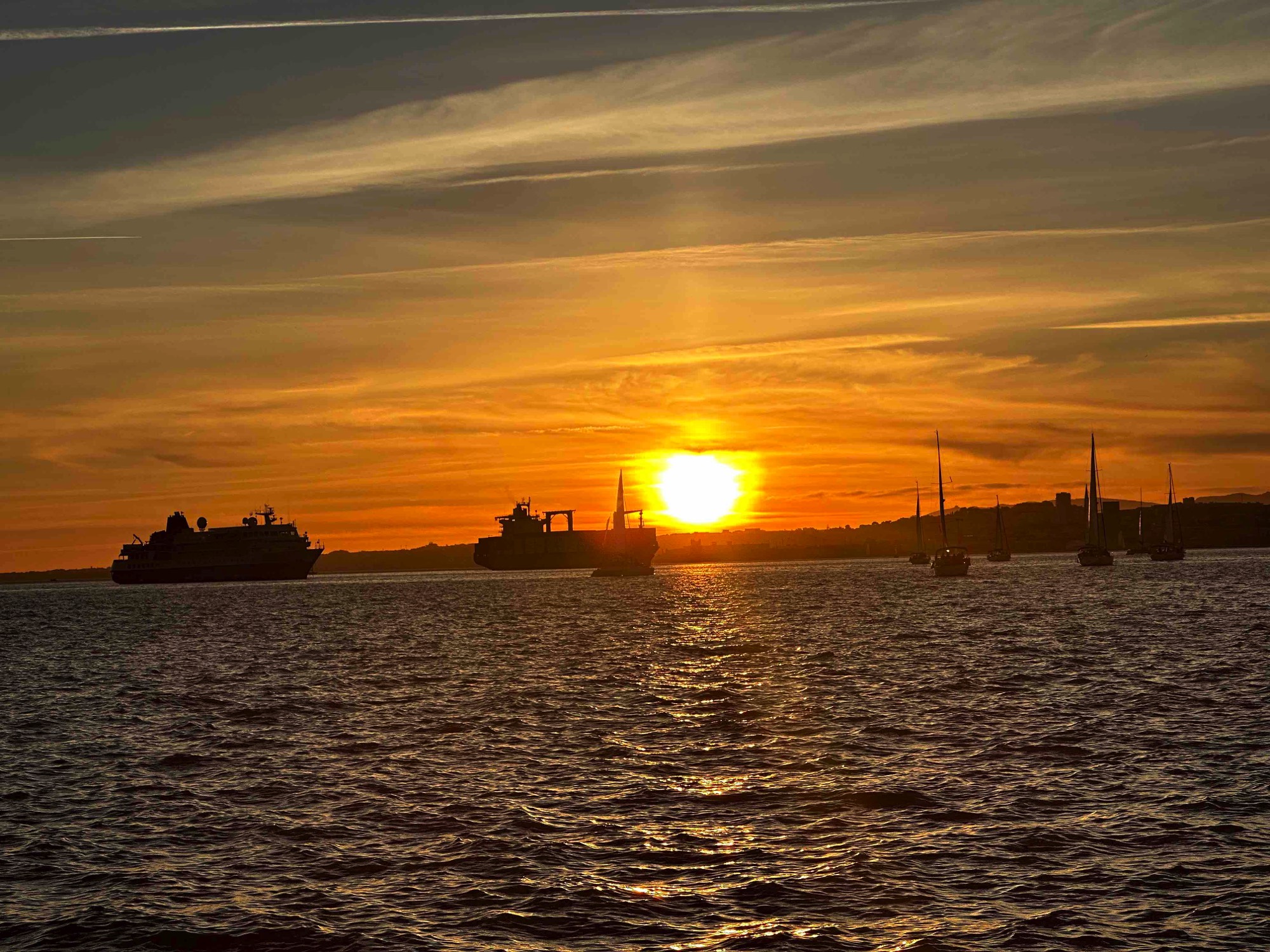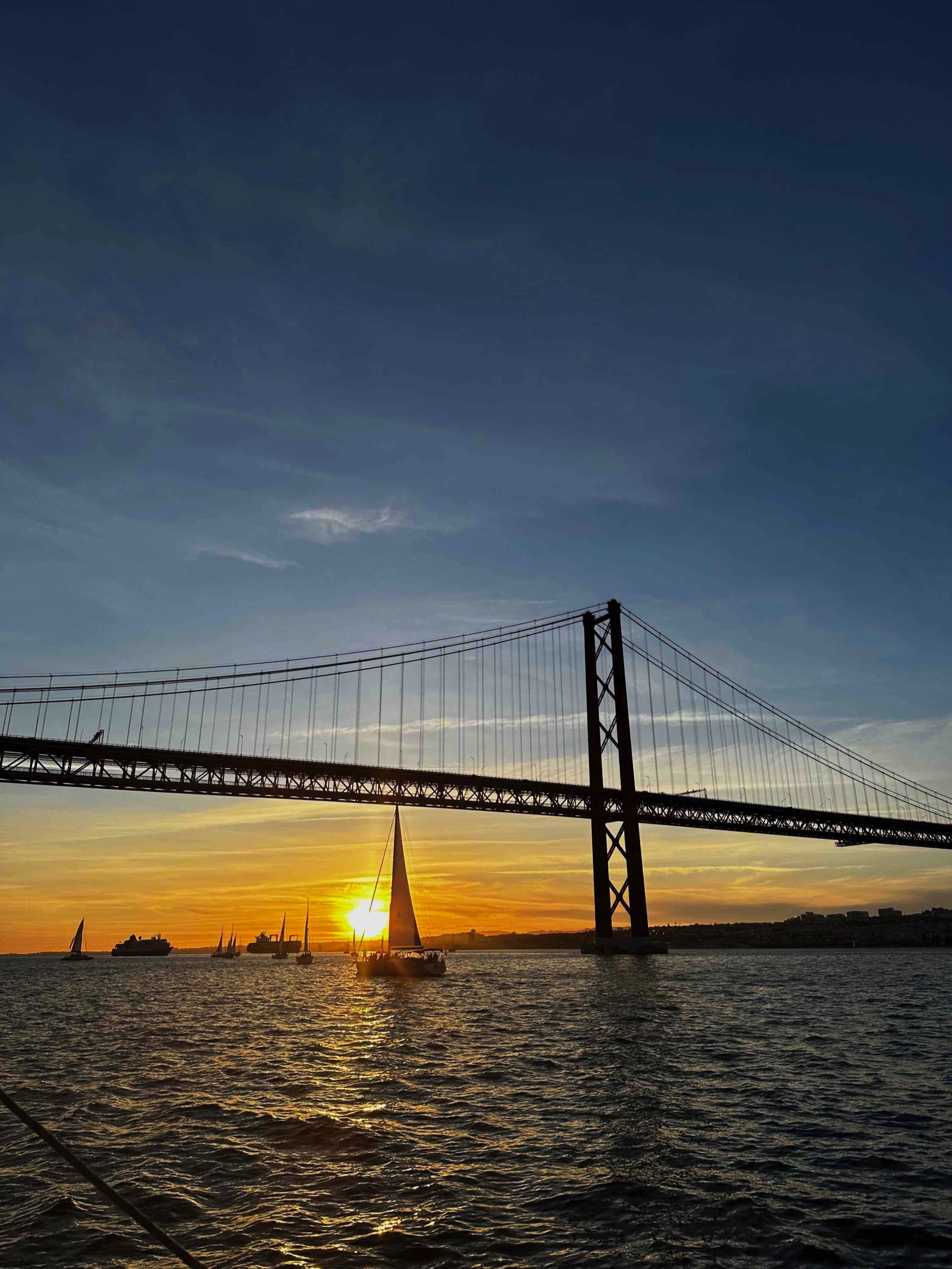 View of the sunset from our sailboat on the Tagus river