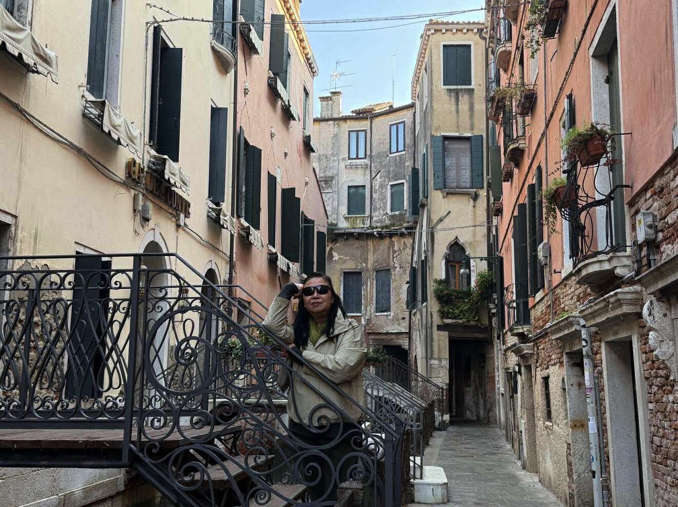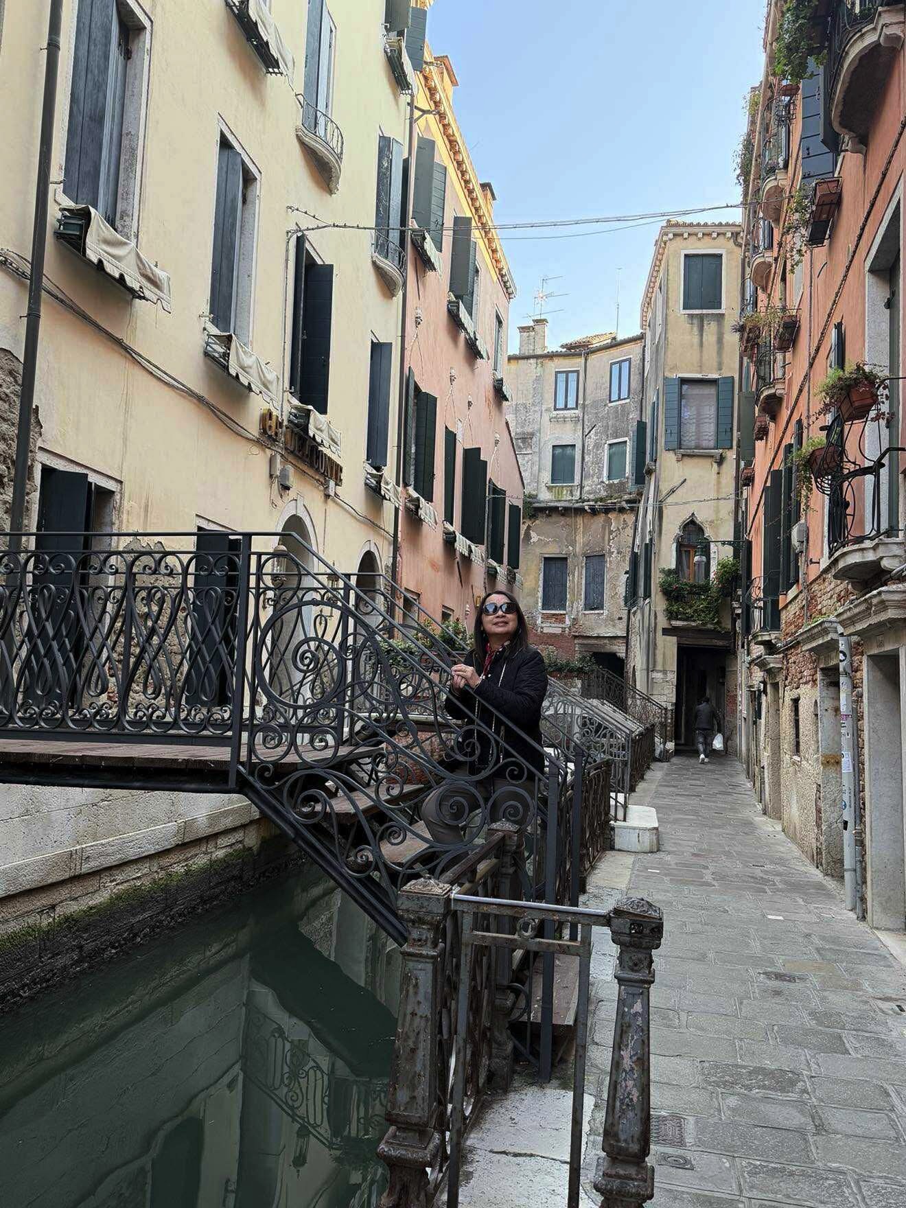 Leah on the steps over a Venetian canal
