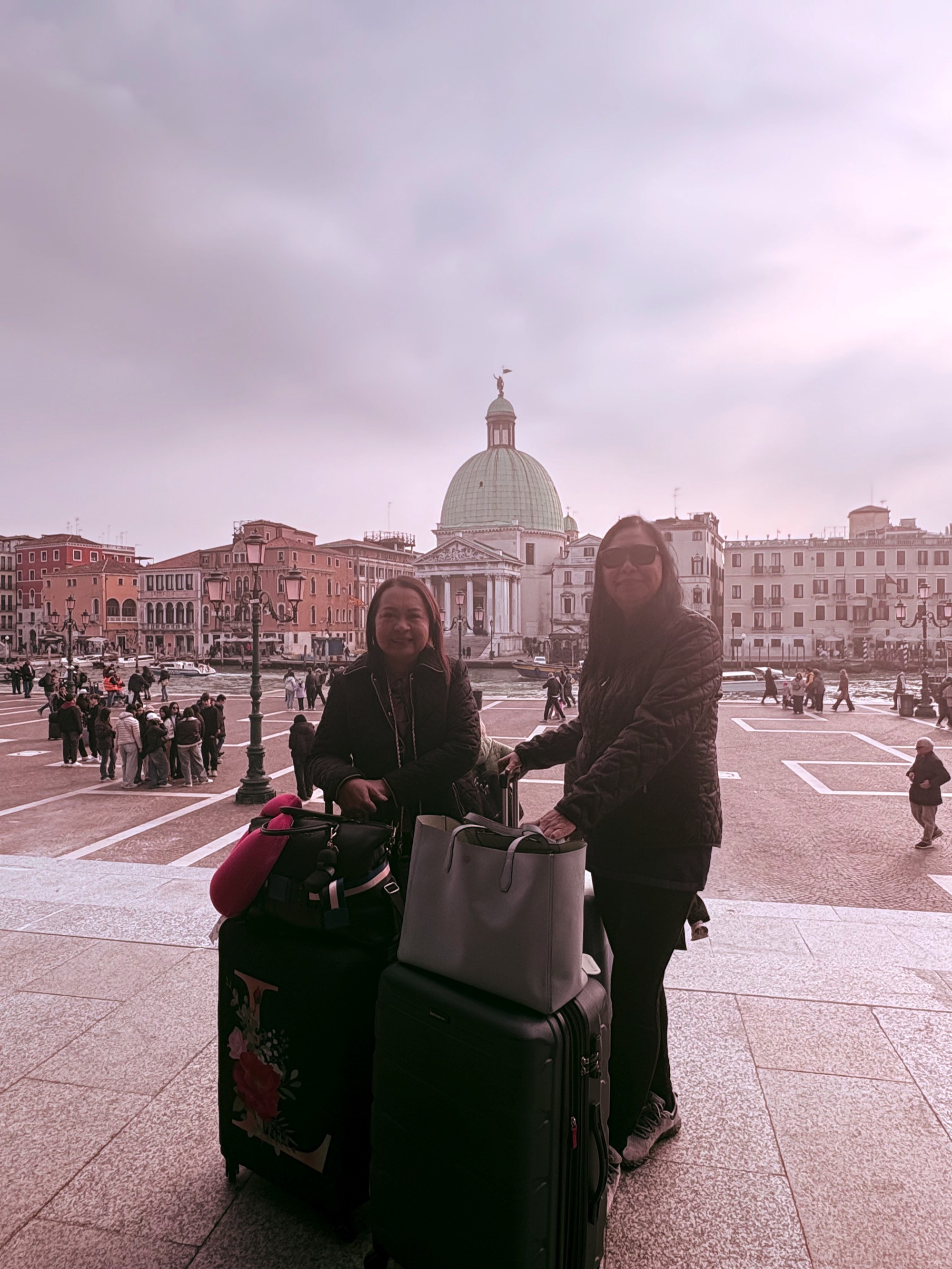 Departure from Venice with Leah - in front of Santa Lucia train station (the church of San Simeone Piccolo in the background)