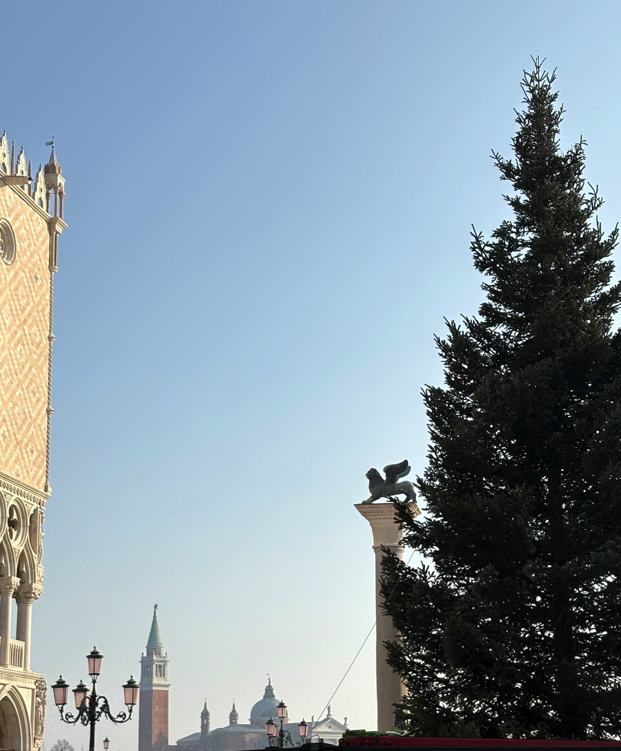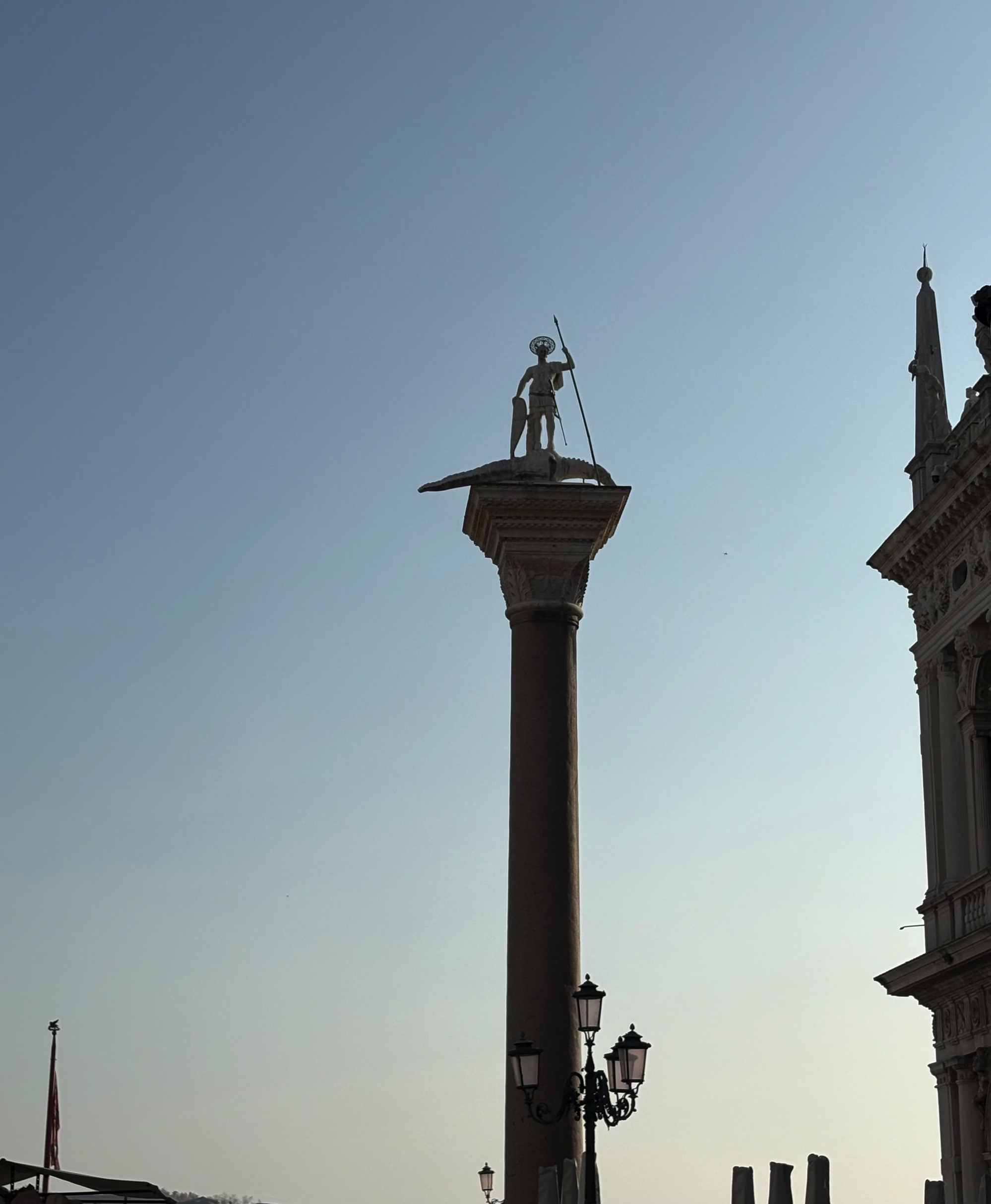 The Lion of Venice (right), with the dome and campanile of San Marco in the distance